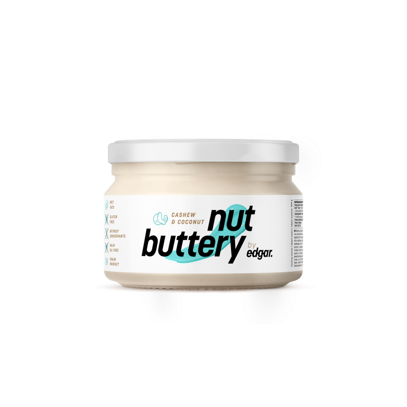 NUT BUTTERY BY EDGAR cu aromă de cocos/caju este delicios, îți oferă energie și îți furnizează mușchilor cantitatea necesară de proteine.