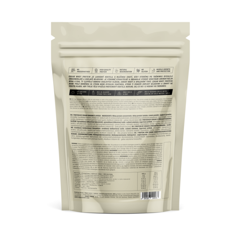 Protein by Edgar va deveni noul tău truc pentru creșterea și recuperarea musculară. Această pudră proteică conține 38 g de proteine per două linguri (2 x 25 g). Proteina noastră este fabricată cu cea mai recentă tehnologie CFM. De asemenea, se mândrește cu un spectru ridicat de aminoacizi.
